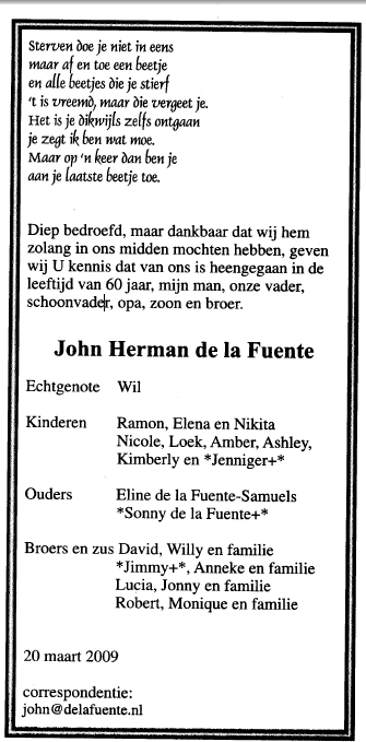 Lieve John, rust zacht, wij zullen jou intens missen...